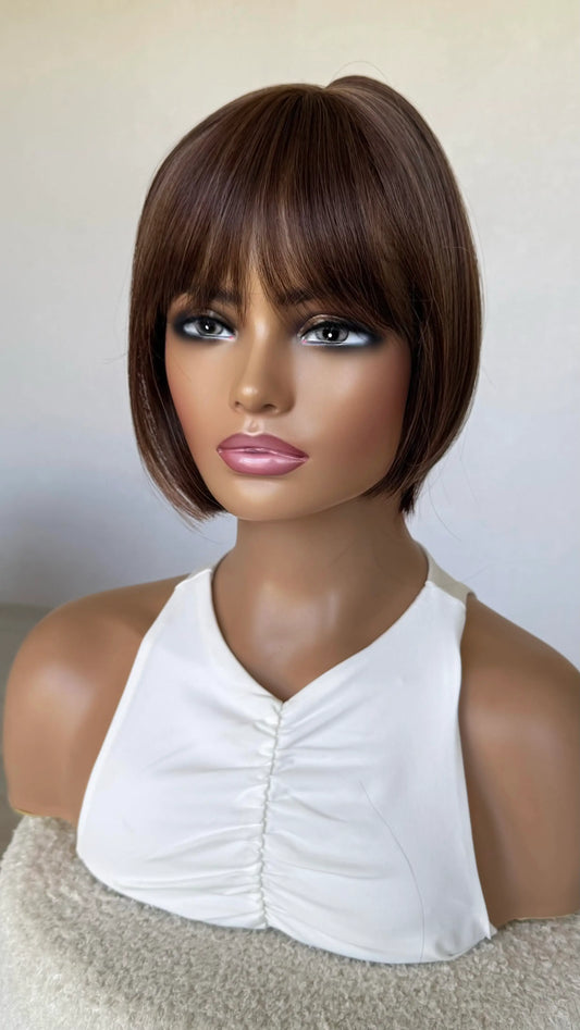 Chocolate Brunette with Fringe and Layers Synthetic – Morning Mocha