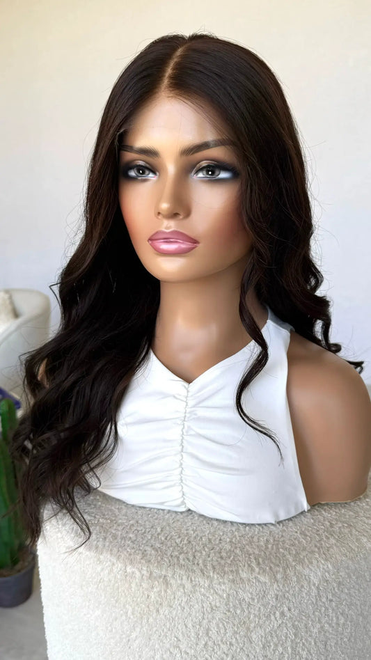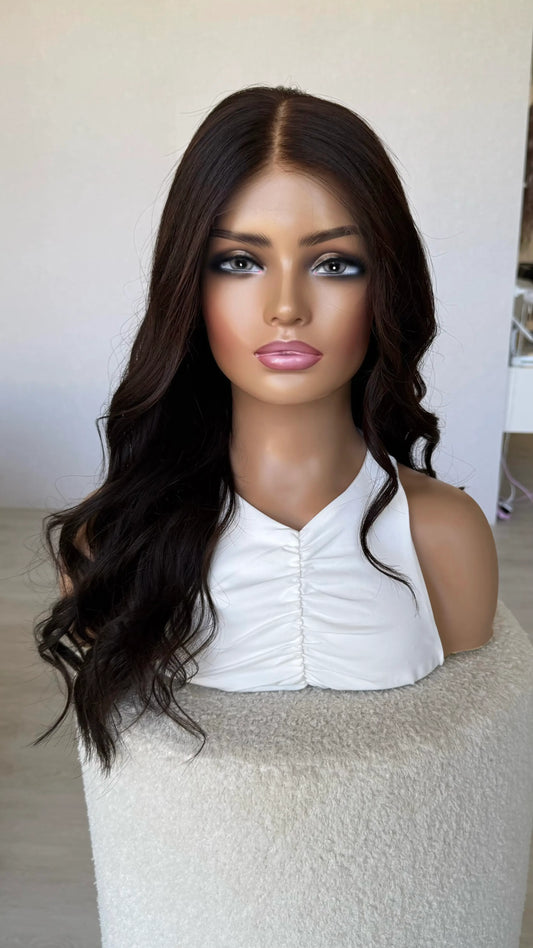 Human Hair Lace Front Wig. Chocolate Brunette - 24 inch- Colour Name: Amara