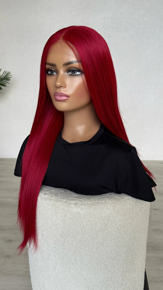 Lace Front Deep Red With Gold Highlights Synthetic Wig – Ruby