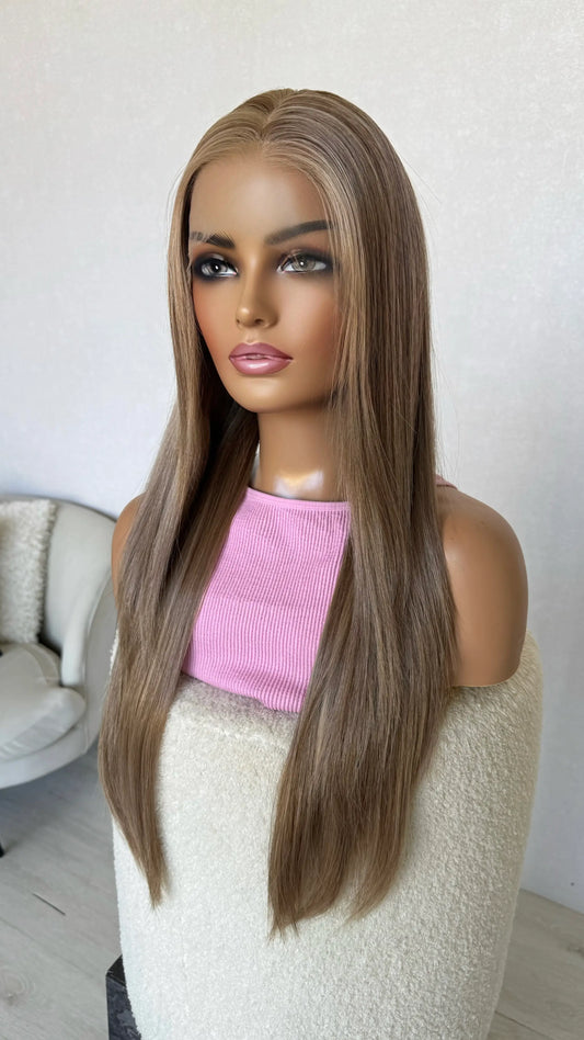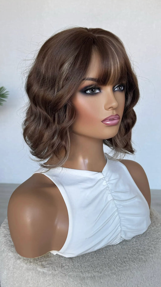 Light Brunette with Blonde Highlights Fringe Synthetic Wig – Hazelnut