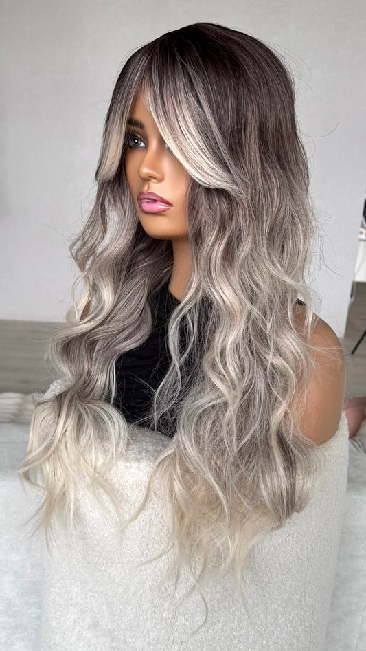 Silver Balayage With Curtain Bang Synthetic Wig - Storm