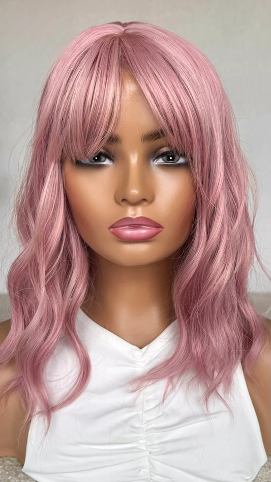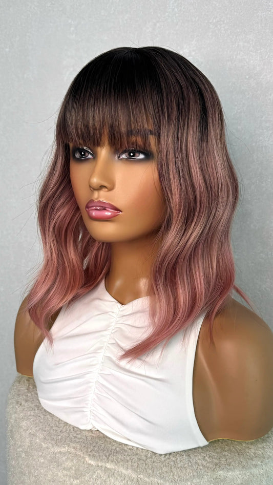 Ombre Pink With Dark Root Wavy Fringe Synthetic – Chelsea