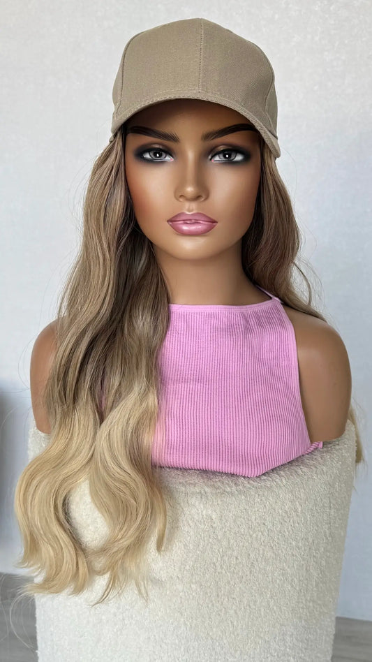 Sandy Blonde Ombre - Tan Hat Synthetic Wig – Breeze