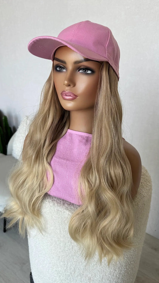Soft Golden Blonde - Pink Hat Synthetic Wig – Glow