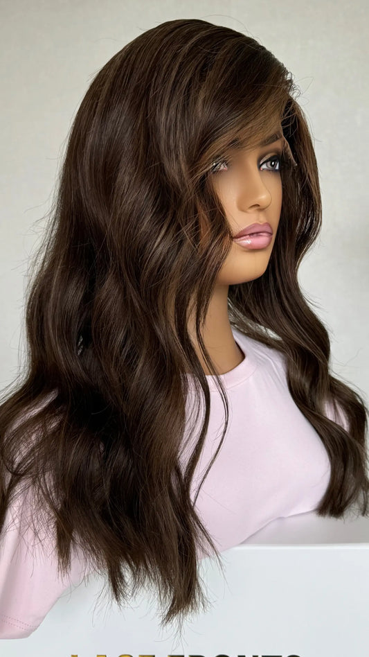 Medical Human Hair Lace Front Wig. Brunette – 22 inch- Colour Name: Bella