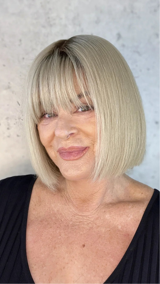 Medical Human Hair Lace Front Wig. Beige Blonde With Shadow Root – 10 inch - Colour Name: Milly