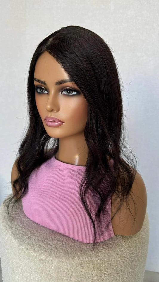 Ready to Ship- Dark Brunette with Highlights - 14 inch- Small Mono Topper