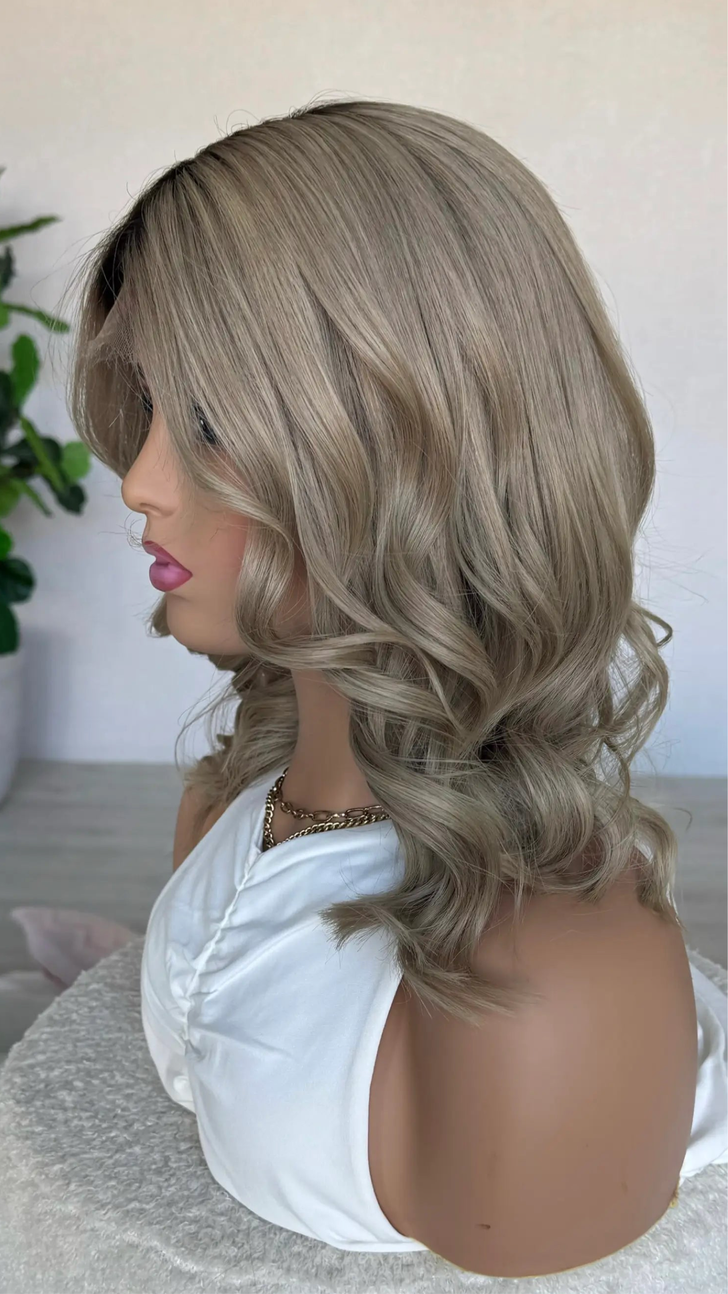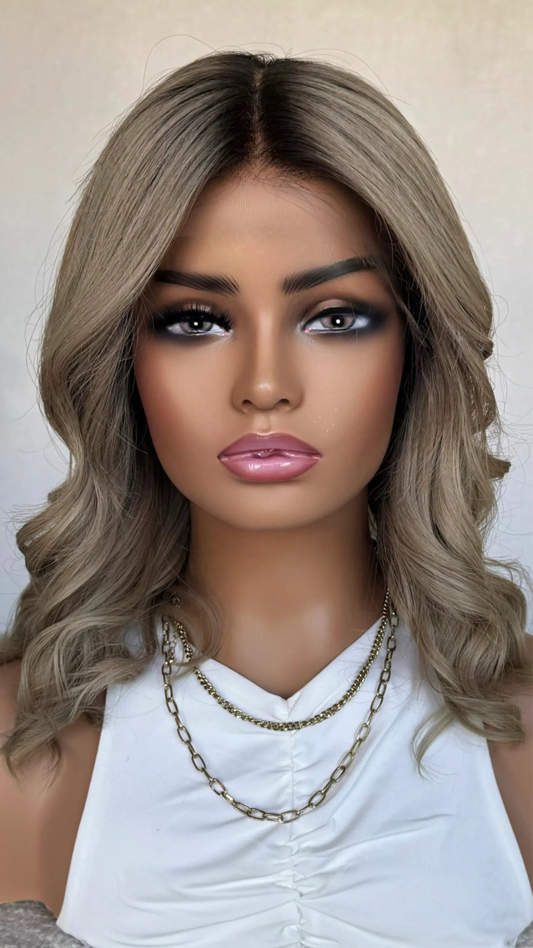 Ash Brunette with Dark Shadow root – 16" Human Hair Lace Front Wig- Colour: Brooklyn