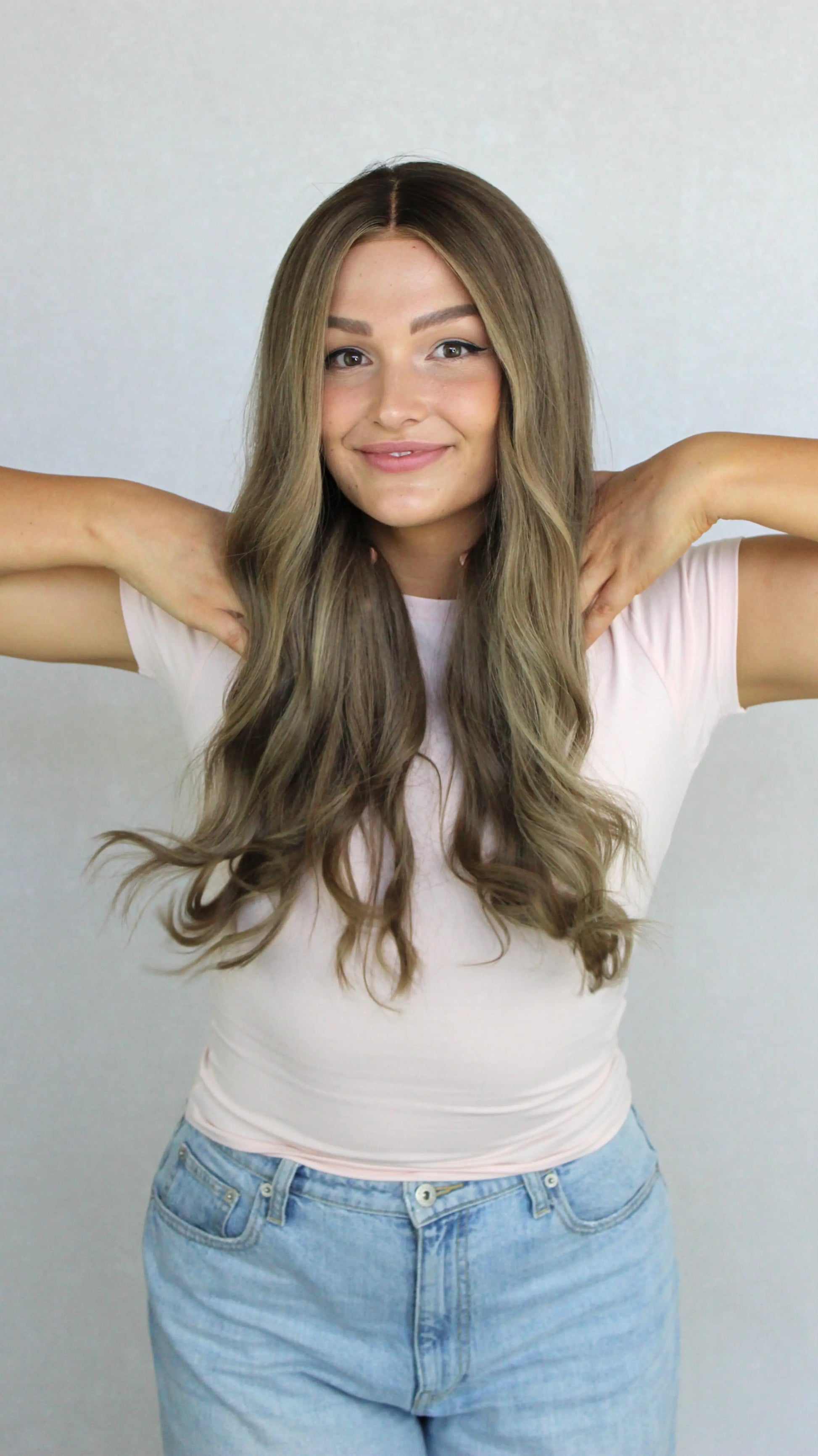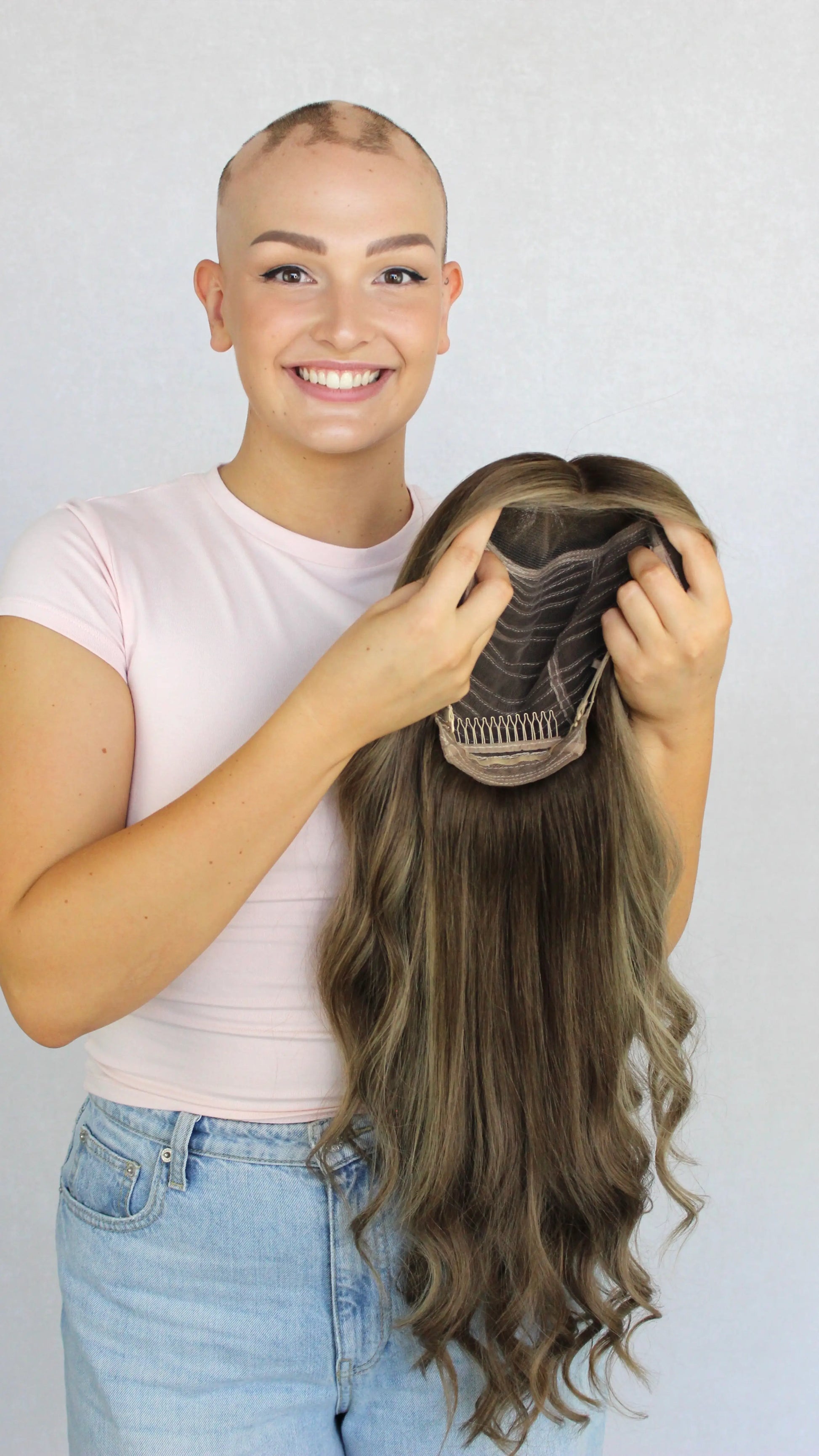 Ash Brunette with Highlights and Soft Root – 26" Human Hair Lace Front Wig- Colour: Jemma